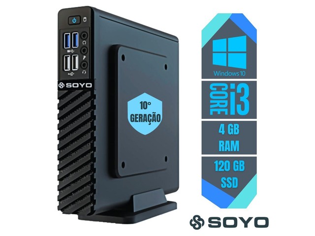 Eis a Soyo Group, um fabricante de eletrônicos que se estabeleceu em 1985 e com sede na China. Atualmente, ela comercializa uma série de produtos eletrônicos, dentre os quais um mini PC (sem nome) dotado de uma CPU Intel Core i3-10100U, com 2 núcleos e 4 threads, rodando a 2.1 GHz (até 4.1 GHz em modo boost) e TDP de 15 Watts, além de ser fabricado sob a litografia de 14nm, de vir também com apenas 4 GB de memória RAM DDR4 (expansível até 16 GB) e um SSD de 128 GB (sem maiores detalhes). Apesar de ser uma máquina bem modesta até mesmo para as minhas necessidades, resolvi adquiri-la para fins de experiência!